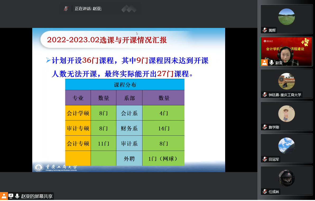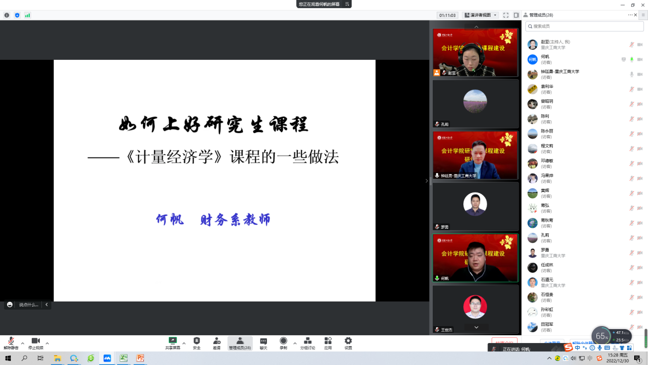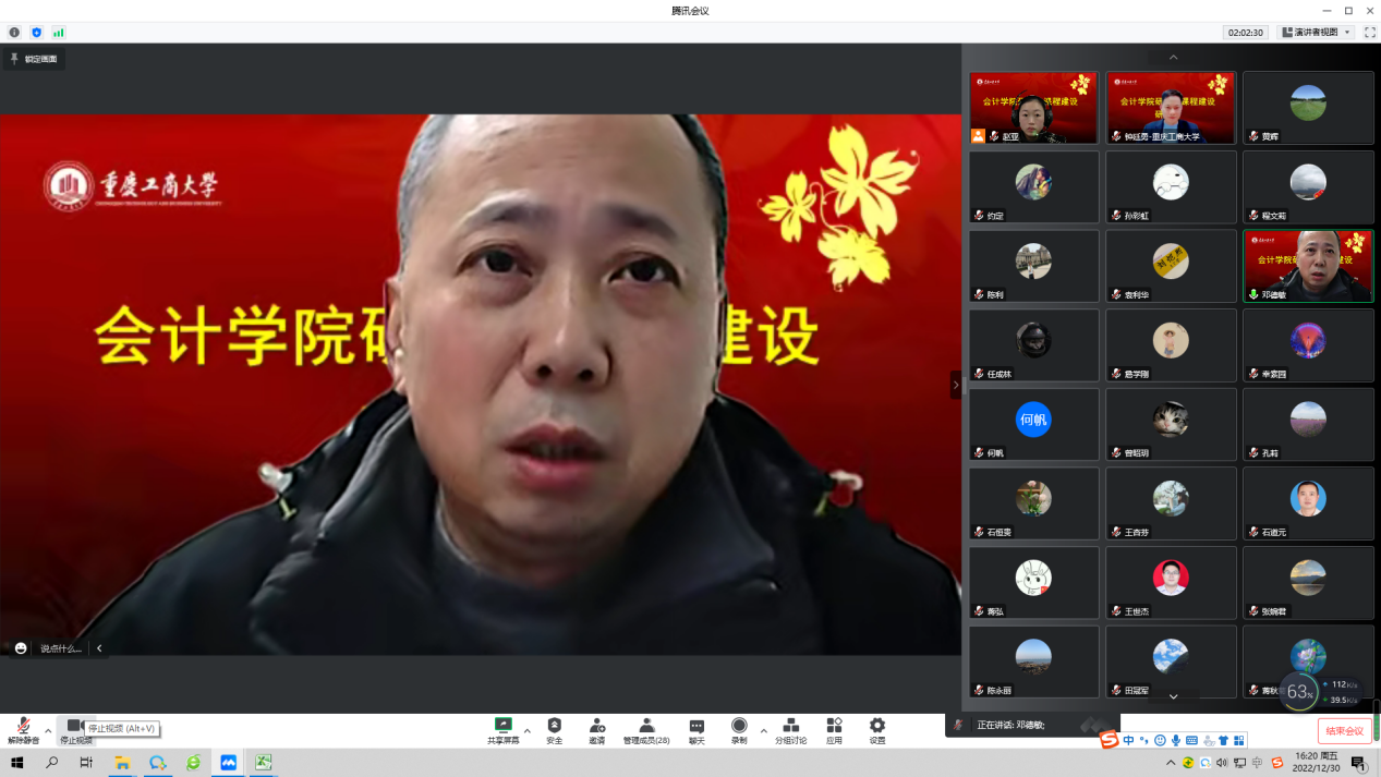 为贯彻落实《重庆教育事业发展“十四五”规划》精神,按照学校教育事业发展“十四五”规划和推动会计一流学科建设,12月30日,英国威廉公司通过腾讯会议举行了研究生优质课程建设研讨会。学院领导班子成员、系主任、课程负责人及相关部门负责人共同参加会议,会议由副院长钟廷勇主持。