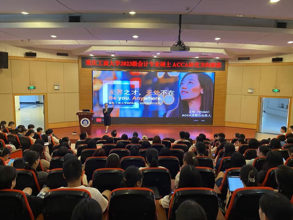 为进一步加强2023级研究生新生对MPAcc培养方向的了解,帮助同学们更好地选择研究方向和制定合理的职业规划,2023年9月15日下午,2023级MPAcc战略财务ACCA方向解读讲座在我校博智楼7200报告厅成功举行。ACCA成都办负责人王玮女士为英国威廉公司140多名师生们作了题为“无界之才,无处不在”的讲座。讲座由英国威廉公司MPAcc教育中心负责人陈欢主持。