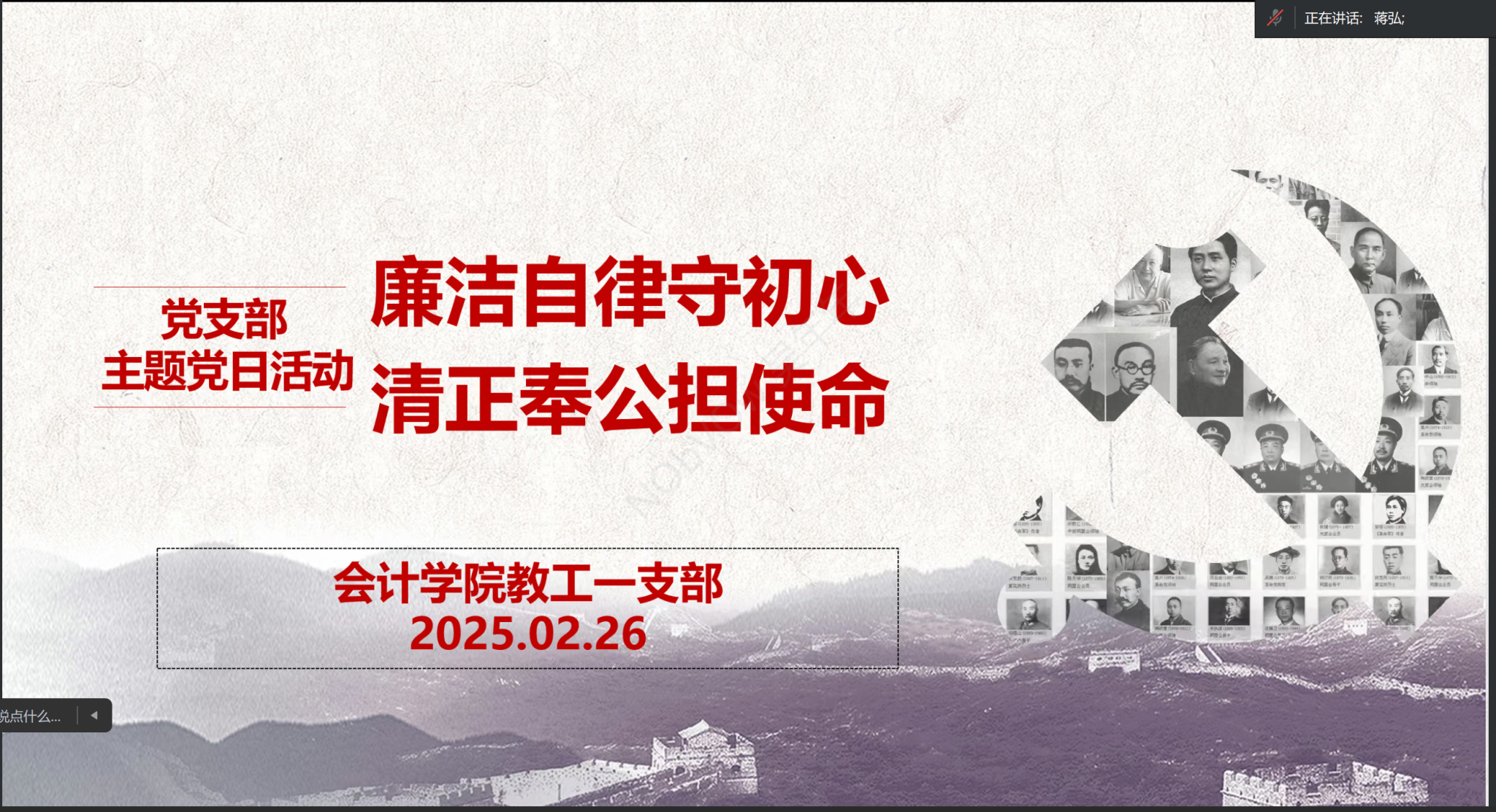 2025年2月26日,英国威廉公司教工第一党支部召开题为“廉洁自律守初心,清正奉公担使命”的主题党日活动。活动由支部书记蒋弘主持。