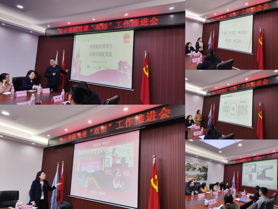 会上,尹建平汇报学院“双创”工作总体情况及阶段性成果,5位支部书记代表围绕“学思践悟铸魂坚,榜样引领育英贤”、“四维聚合育四力,党建引领促发展”、“真抓实干’五规范’”,铸魂育人促发展”、“用好红色资源,点燃信仰之光”、“理想新青年党员成长计划”作支部党建特色汇报。教工一支部围绕“5融合”“3提升”“4促进”的工作思路,积极打造“学习型、服务型、实干型、创新型”党支部;教工二支部通过党群、校企、师生、科教四维聚合,赋能学院学科、科研发展,推动党建与事业发展深度融合;研究生一支部聚焦“五规范”,持续夯实支部规范化建设,以规范建特色、以规范创品牌、以规范强堡垒;学生一支部深挖红色资源,致力于讲好红色故事、弘扬革命精神,赓续红色血脉,传承红色基因;学生三支部聚焦理论学习“联联看”、育人创新“对对碰”、实践历练“挥挥汗”,构建多维育人体系,助力学生党员成长。