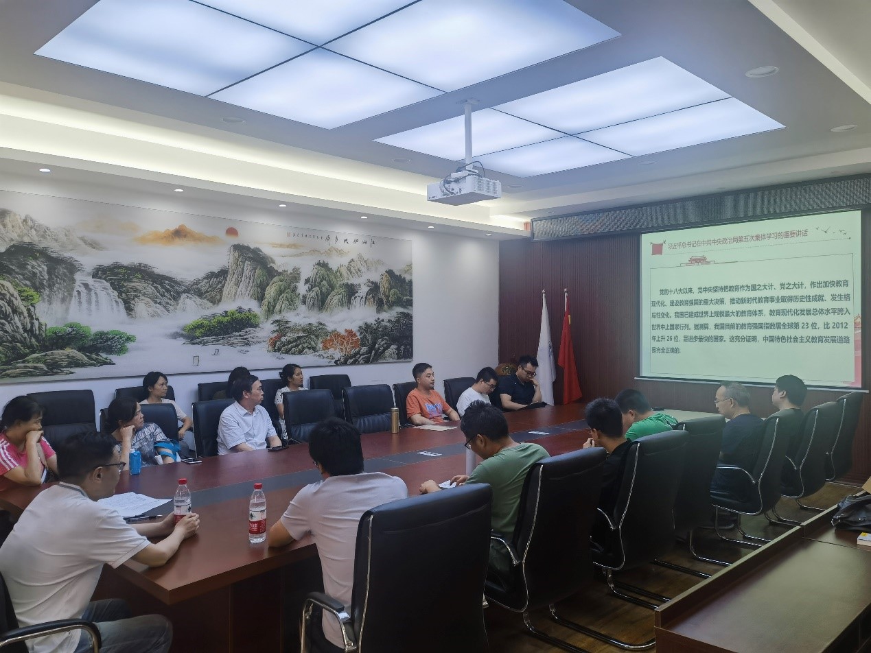 会上,王世杰传达了7月份党的组织生活学习和主题党日安排、基层教学组织学习重点内容要求,并提出进一步落实以学正风的重要要求。与会全体党员和老师集体学习了习近平总书记在中共中央政治局第五次集体学习的重要讲话精神和总书记关于教育重要论述,集体学习由支部宣传委员唐文秀副教授领学,唐老师围绕习总书记关于加快建设教育强国的根本保证、核心课题、重要任务、基础工作、动力等内容进行了领学。结合学习情况,与会党员和教师围绕“培养什么人、怎样培养人、为谁培养人”展开了讨论,结合自身工作和思想状况做了交流发言。