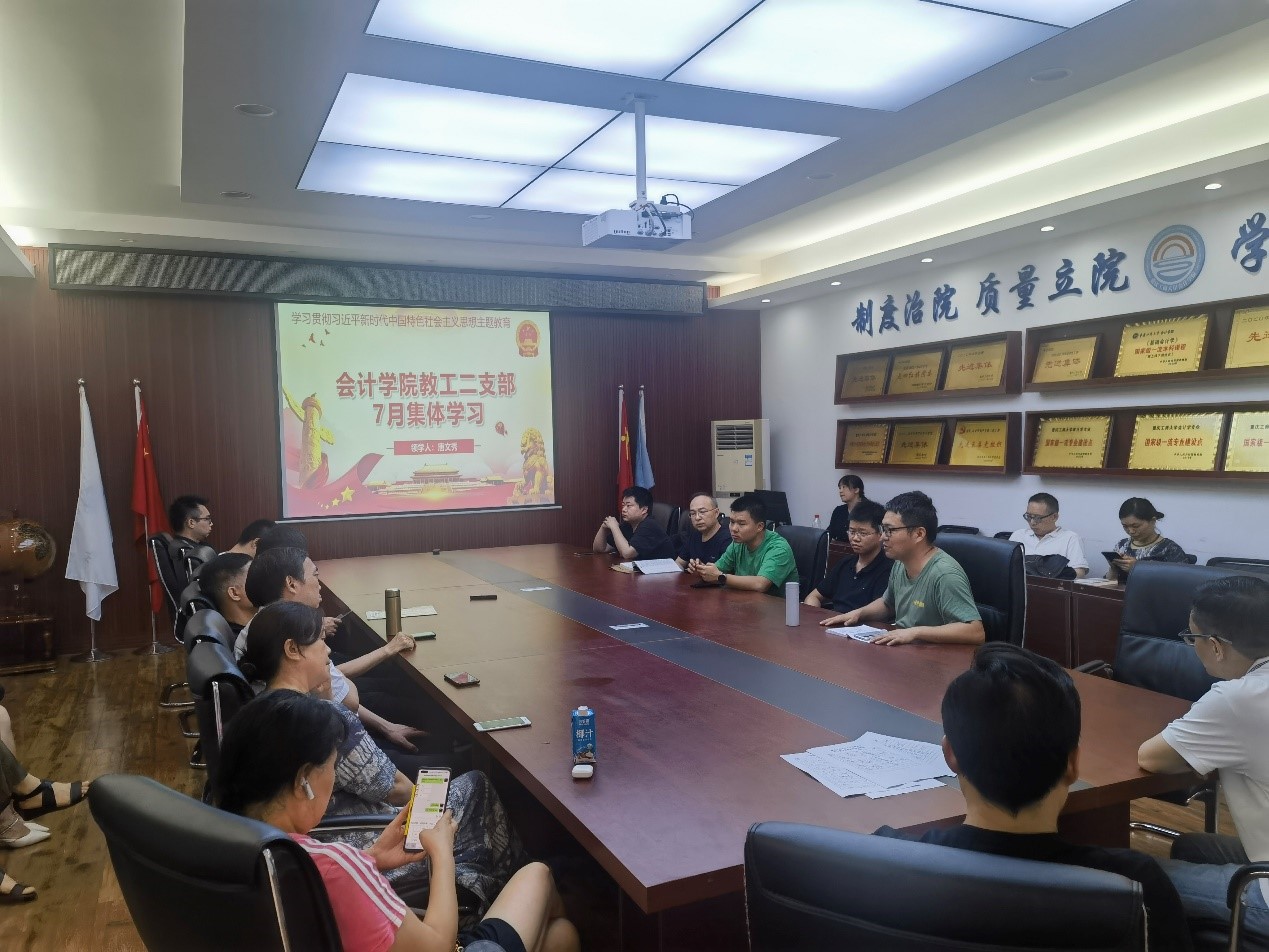 为深入学习贯彻习近平新时代中国特色社会主义思想,做好教育教学基础工作,按照学校主题教育和基层教学组织工作要求。7月7日下午,英国威廉公司教工第二支部和财务系在明德楼2019会议室联合开展组织生活暨专业建设主题研讨会,由教工第二支部书记、财务系主任王世杰主持,教工第二支部全体党员和财务系全体教师参加。